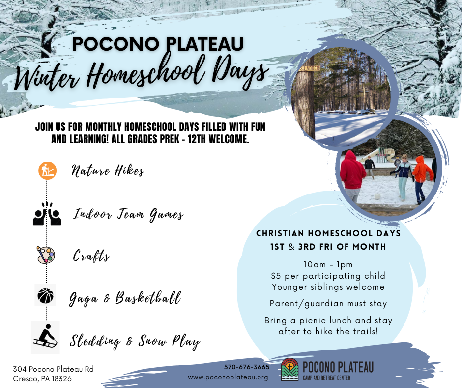 Pocono Plateau Camp and Retreat Center 304 Pocono Plateau Rd, Cresco, PAOur Homeschool Days are back! Join us for monthly homeschool days filled with fun and learning! All grades 1st – 12th welcome. Our Christian homeschool days will be held the […]